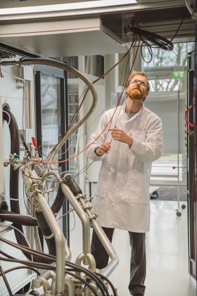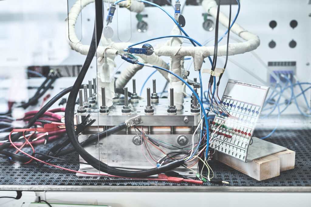Up to 50 kW test station is used for evaluating short commercial stacks, providing insights into high current performance and durability, using advanced equipment in-line EIS and gas quality measurements.